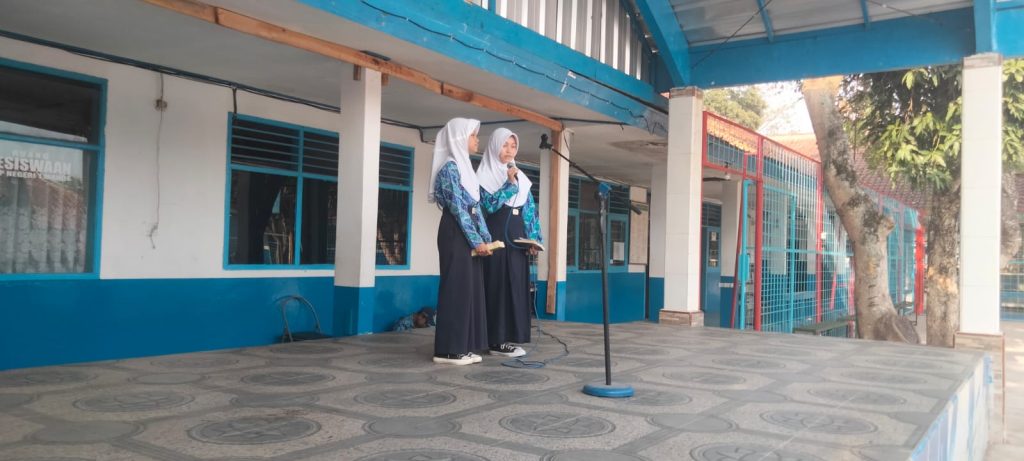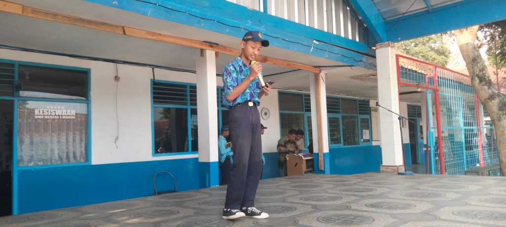 Sebelum ke penampilan kreasi seni, ada perwakilan dari kelas IX yang mereview buku cerita bacaannya . Yu kita dengarkan…