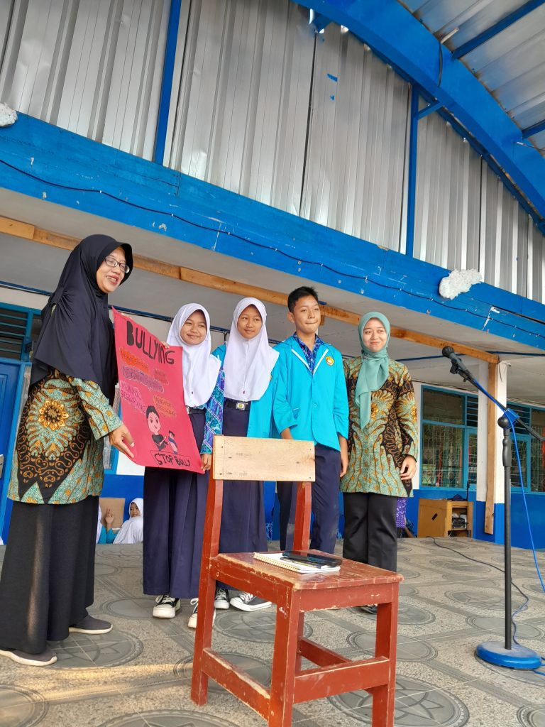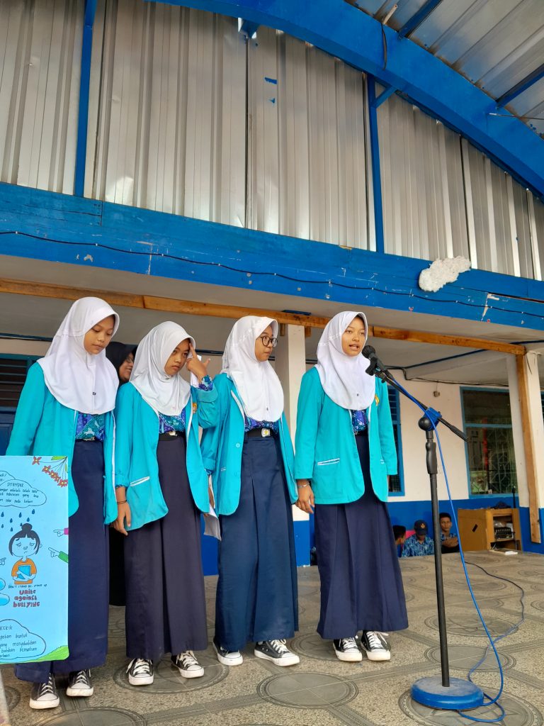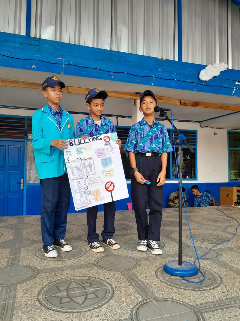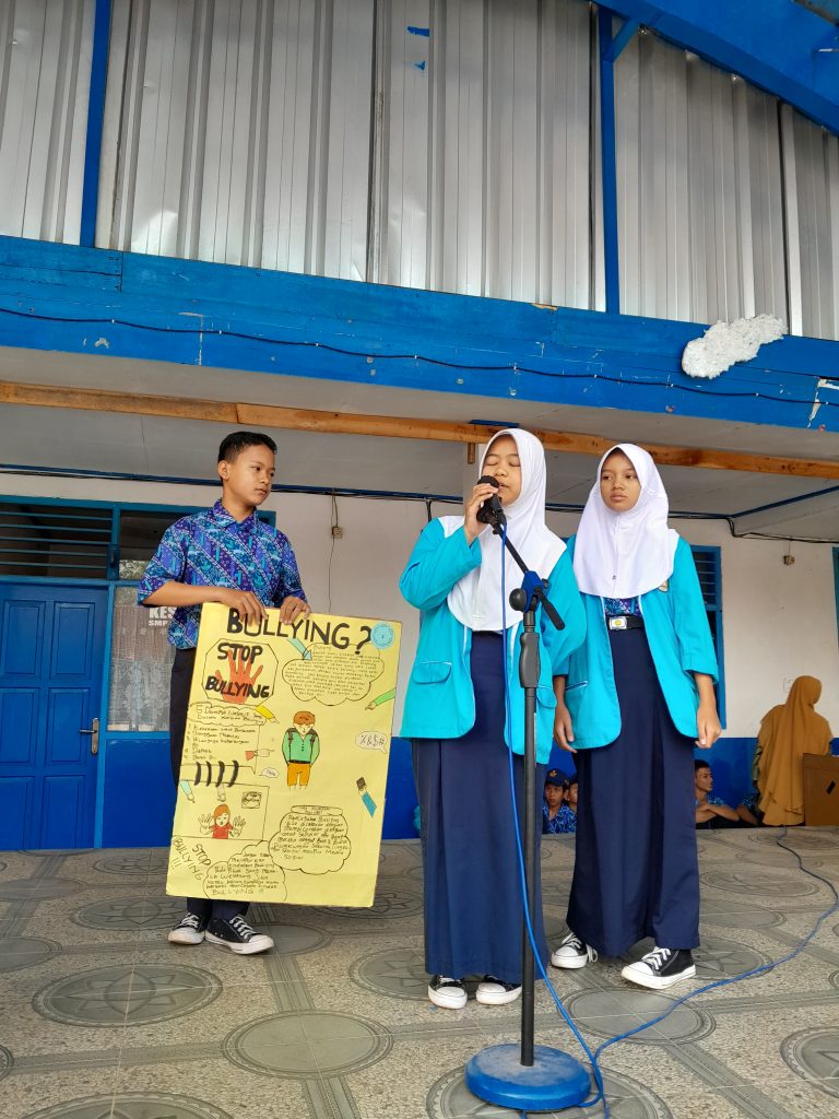 Dilanjutkan dengan tampilan lagu anti bullying dan tepuk anti bullying oleh seluruh siswa kelas VII