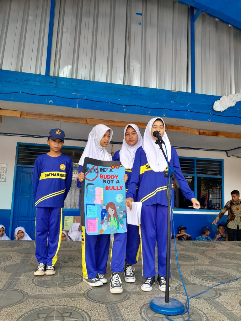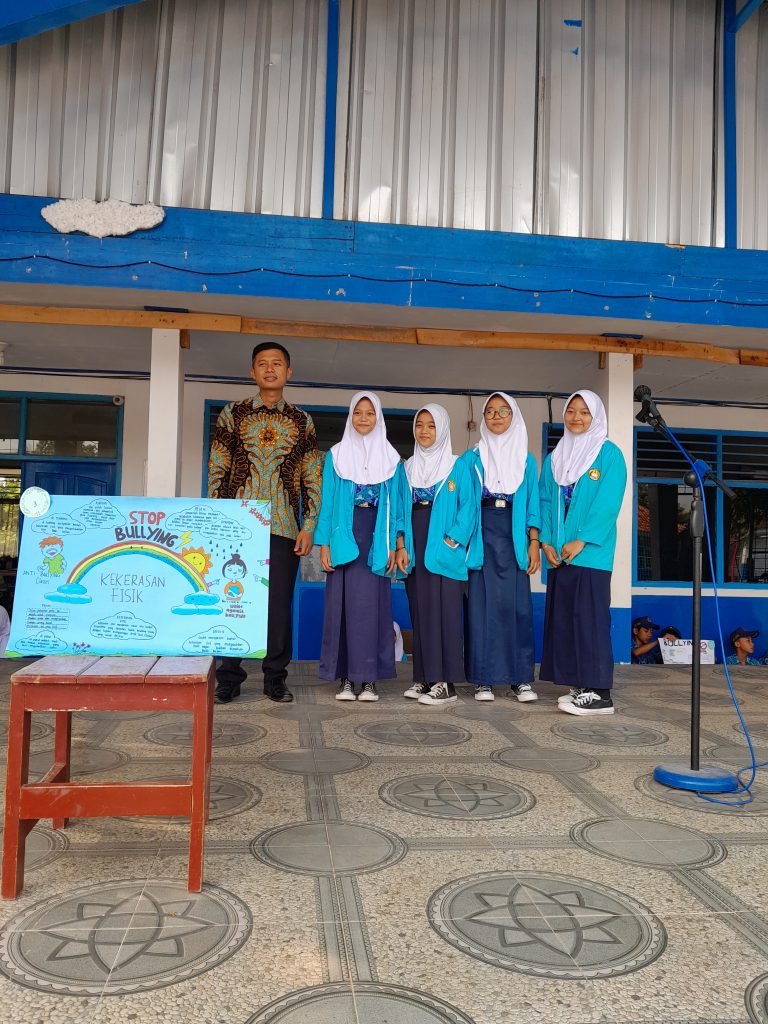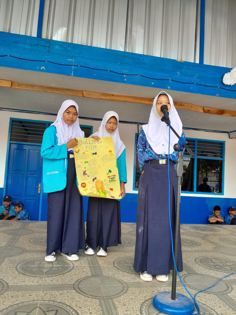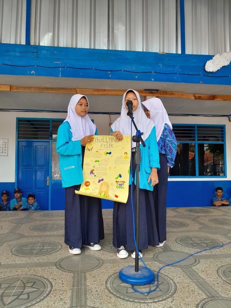 Dilanjutkan dengan tampilan lagu anti bullying dan tepuk anti bullying oleh seluruh siswa kelas VII
