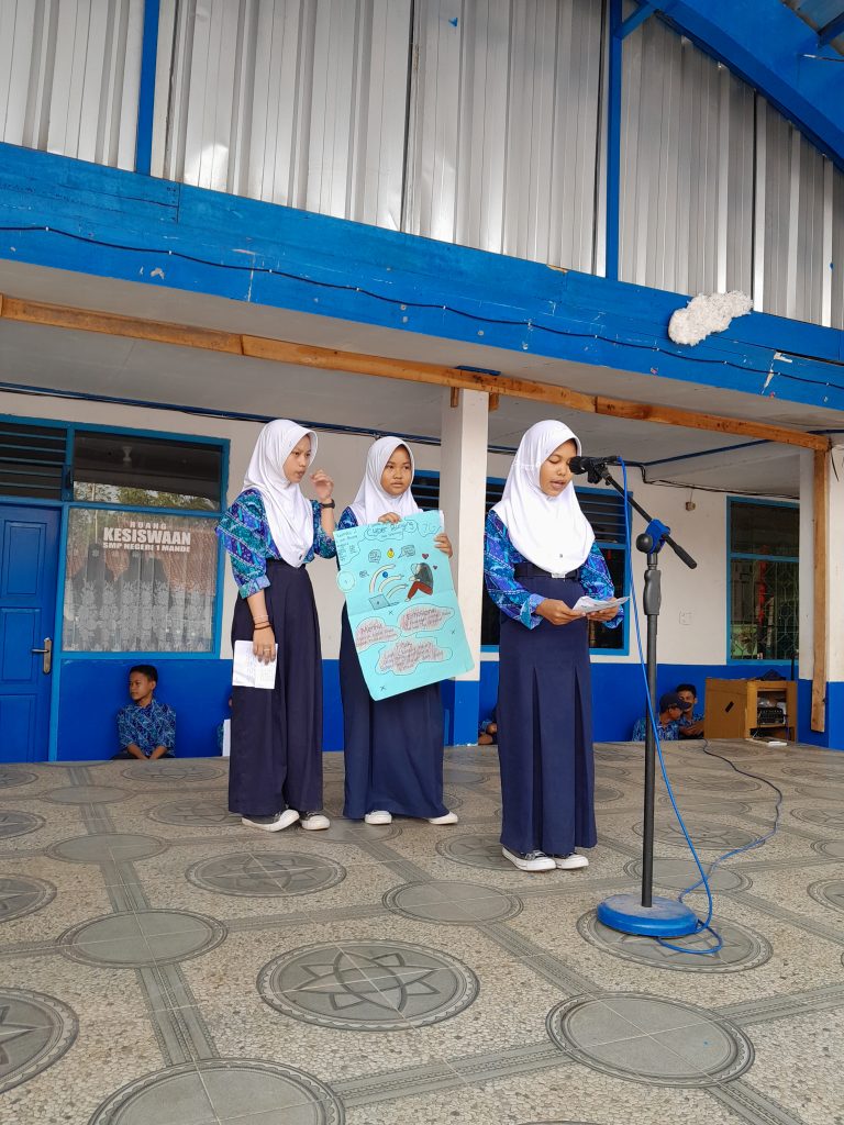 Inilah yang kita tunggu-tunggu penampilan poster terbaik dari kelas VII A-VII J yang dipandu oleh pembawa acara yaitu Ibu Santi Kurniawati, M.Pd